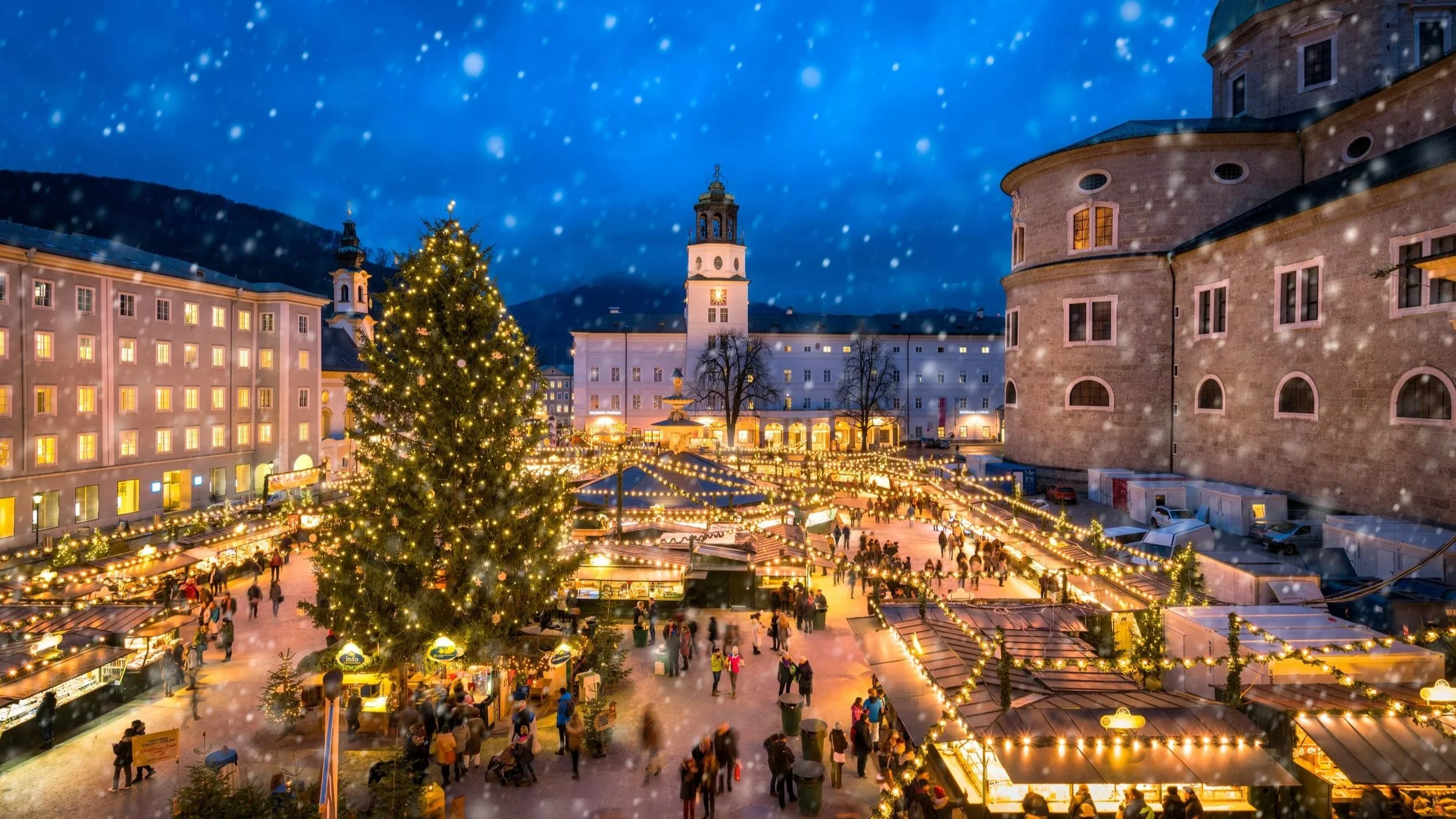 Salzburg’s main market is one of Europe’s oldest, set beneath a canopy of white lights. Traditional music and alpine specialties define the experience.