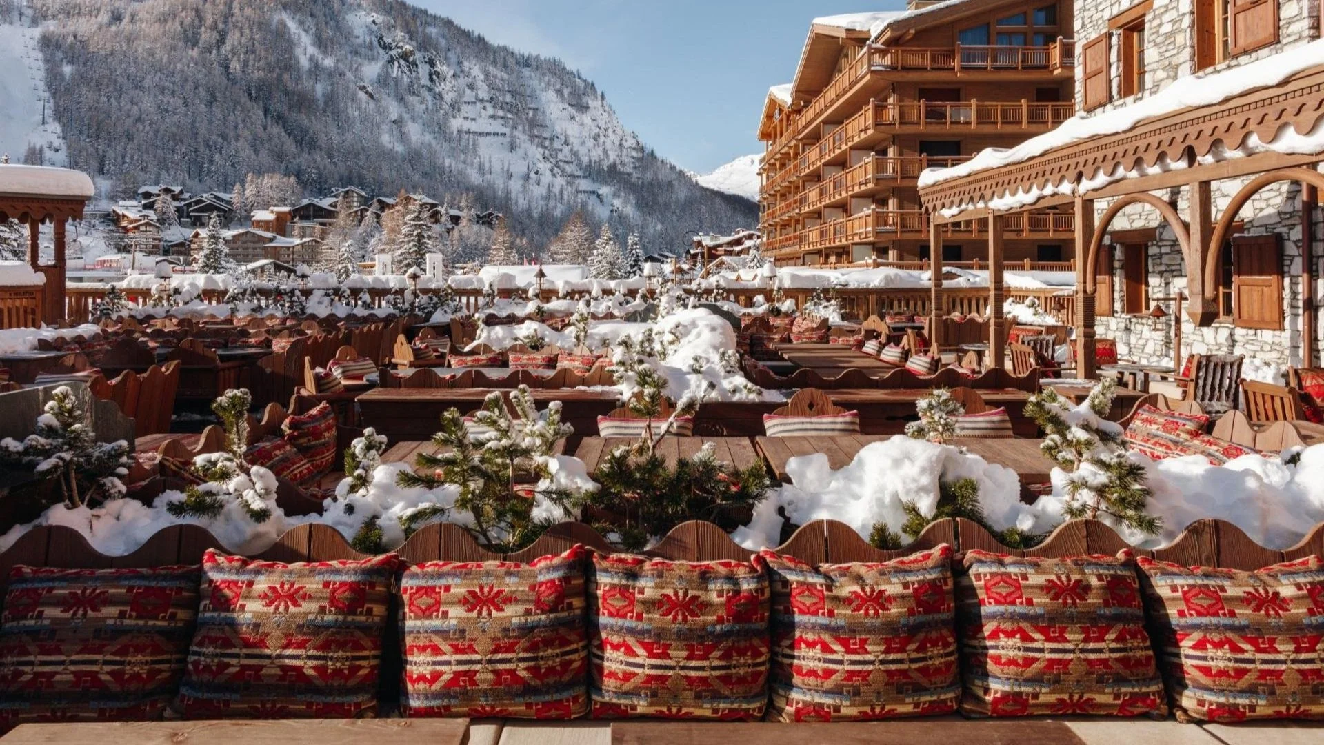 Airelles Val d'Isère | Hotel Airelles Val d’Isère boasts an unparalleled location at the base of the Olympic Bellevarde and Solaise slopes. A member of the renowned Les Airelles portfolio, the hotel features a French baronial design, offering a range of dining options, an outdoor terrace, and a state-of-the-art wellness area. Highlights include a 20m swimming pool, jacuzzi, sauna, and hammam. There’s also a children’s club, a cinema room, and a spacious bar and lounge area.