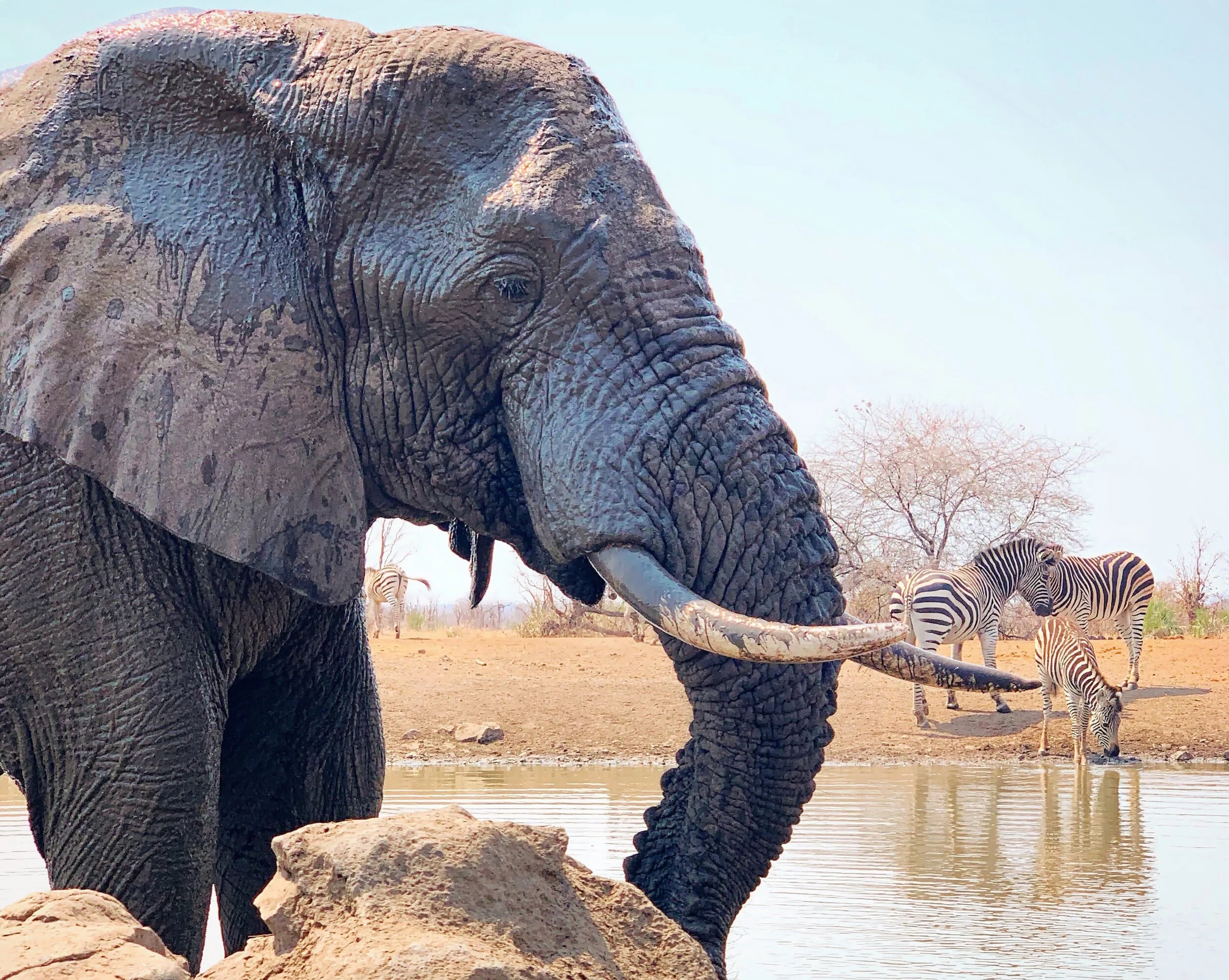 The bull elephant stopped ten feet from our vehicle and just stood there, in the type of darkness that requires a constant squint, that triggers an unbroken internal patter of question and reassurance that what’s in front of you is real. And then he moved, along to the left side of the vehicle, where I sat on the door, trying not to breathe and trying not to forget. I could smell the tonic and the lime and the gin and the elephant. I could hear the ice and the trees and the birds and his breath. Time swelled up like a parachute just catching the air, like we were living at the peak of an inhale, for twenty minutes that might have been ten seconds and might have been a year. It was the loudest silence and the most oppressive expansiveness and we were suspended there, held aloft by uncertainty and wonder and fear and trust. And then he dissolved into the dark – because suddenly it was night – and we remembered our sundowners, sweating in our hands, and we raised a toast, to revelatory joy and to Zimbabwe.